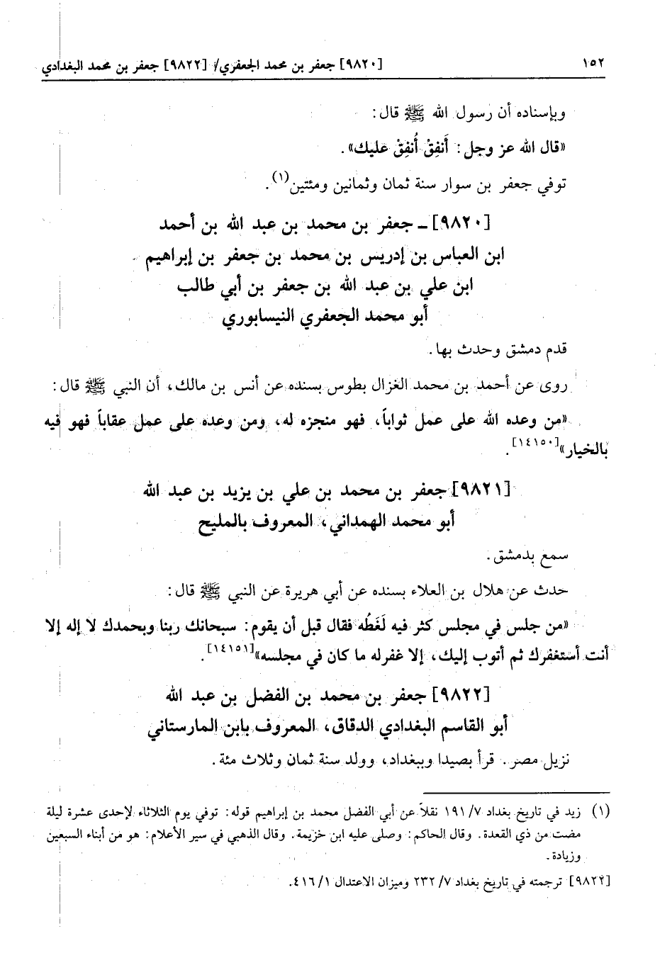 [9822] جعفر بن محمد بن الفضل بن عبد الله أبو القاسم البغدادي الدقاق، المعروف بابن المارستاني