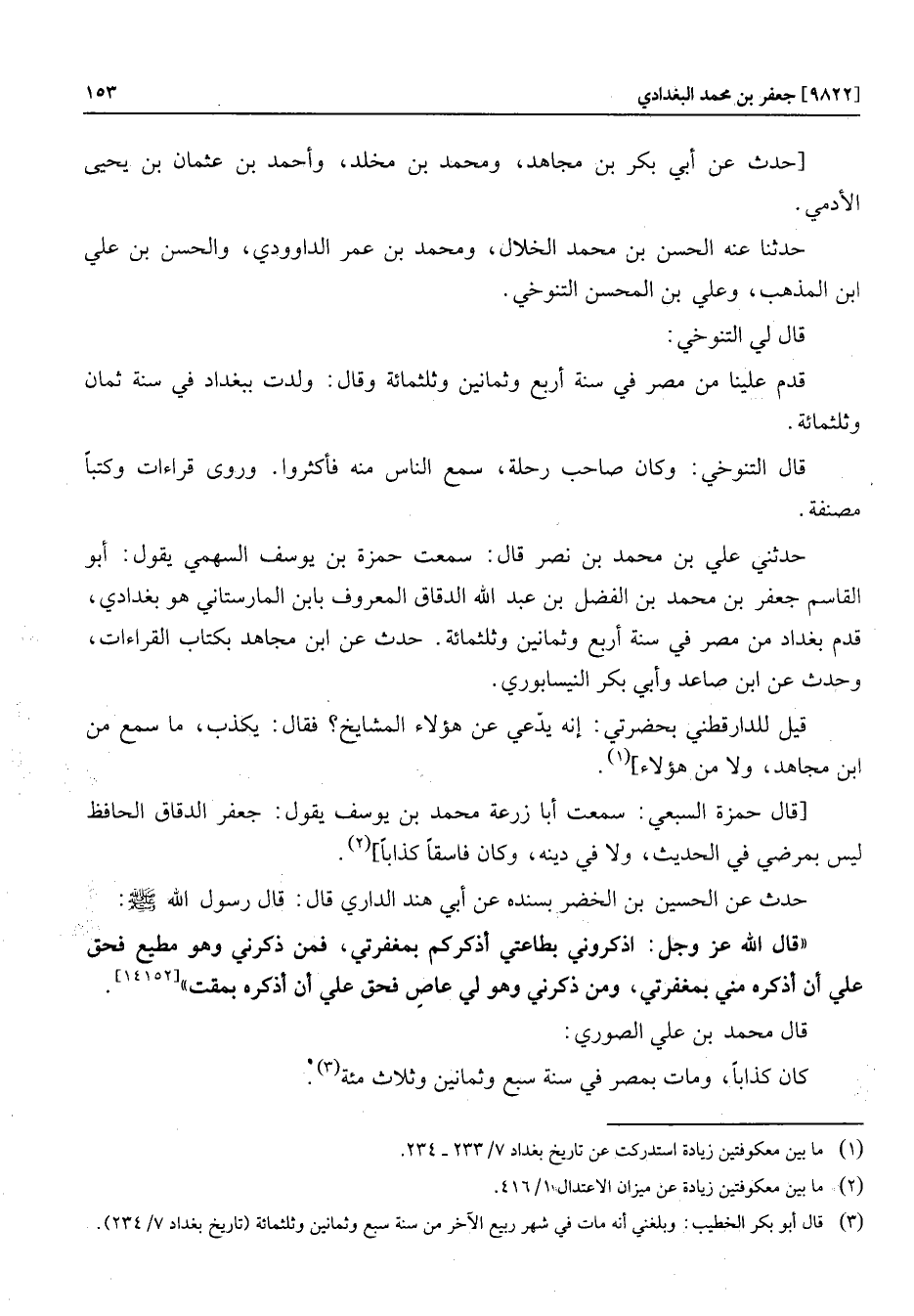 قيل للدار قطني بحضرتي: إنه يدّعي عن هؤلاء المشايخ؟ فقال: يكذب، ما سمع من ابن مجاهد، ولا من هؤلاء] «1» .