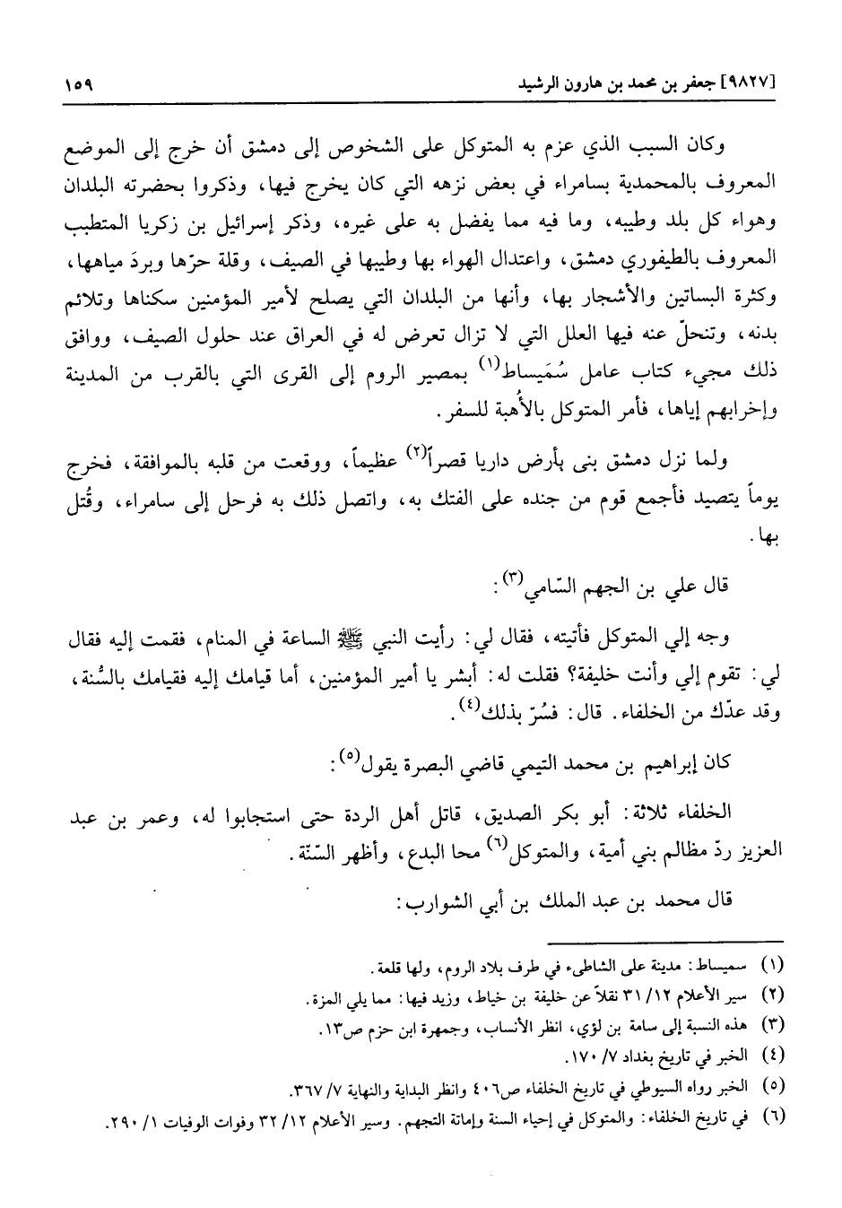 وكان السبب الذي عزم به المتوكل على الشخوص إلى دمشق أن خرج إلى الموضع المعروف بالمحمدية بسامراء في بعض نزهه التي كان يخرج فيها، وذكروا بحضرته البلدان وهواء كل بلد وطيبه، وما فيه مما يفضل به على غيره، وذكر إسرائيل بن زكريا المتطبب المعروف بالطيفوري دمشق، واعتدال الهواء بها وطيبها في الصيف، وقلة حرّها وبرد مياهها، وكثرة البساتين والأشجار بها، وأنها من البلدان التي يصلح لأمير المؤمنين سكناها وتلائم بدنه، وتنحلّ عنه فيها العلل التي لا تزال تعرض له في العراق عند حلول الصيف، ووافق ذلك مجيء كتاب عامل سميساط «1» بمصير الروم إلى القرى التي بالقرب من المدينة وإخرابهم إياها، فأمر المتوكل بالأهبة للسفر.