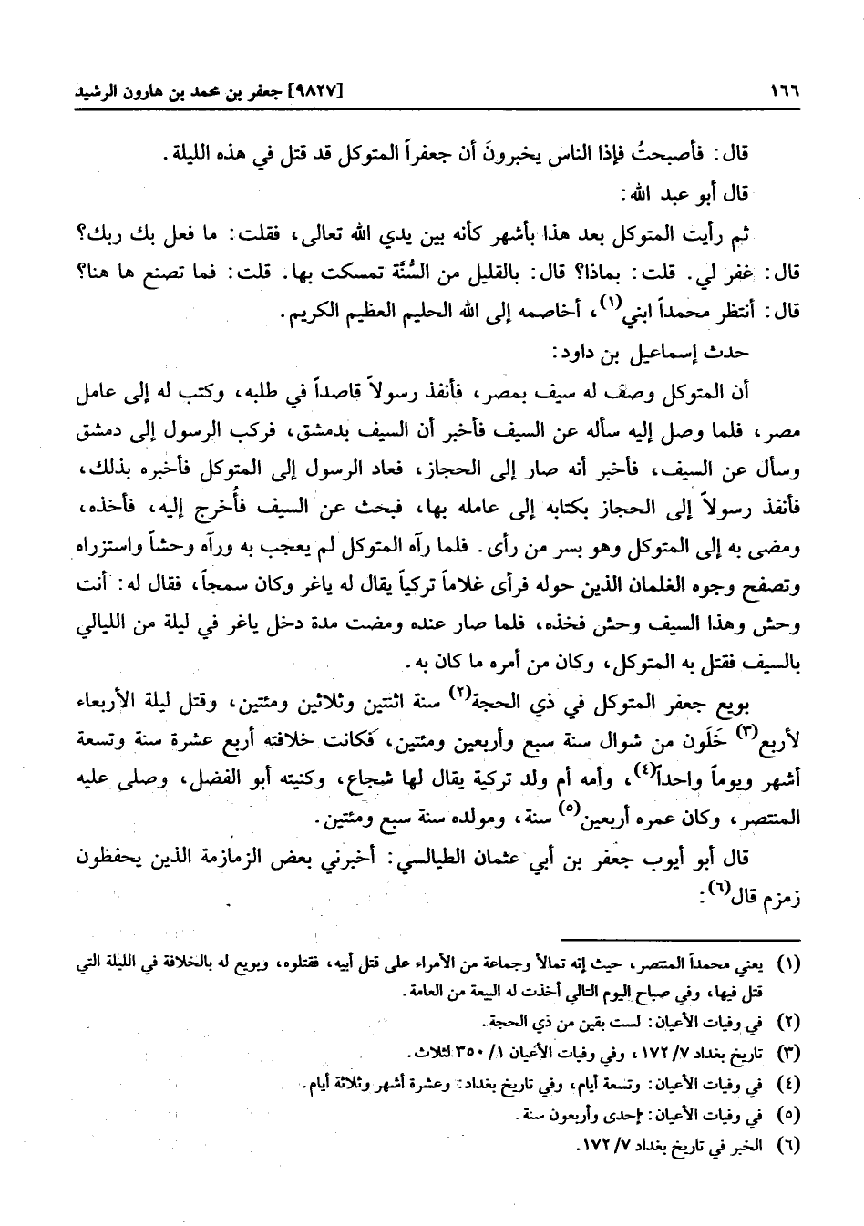 قال: فأصبحت فإذا الناس يخبرون أن جعفرا المتوكل قد قتل في هذه الليلة.