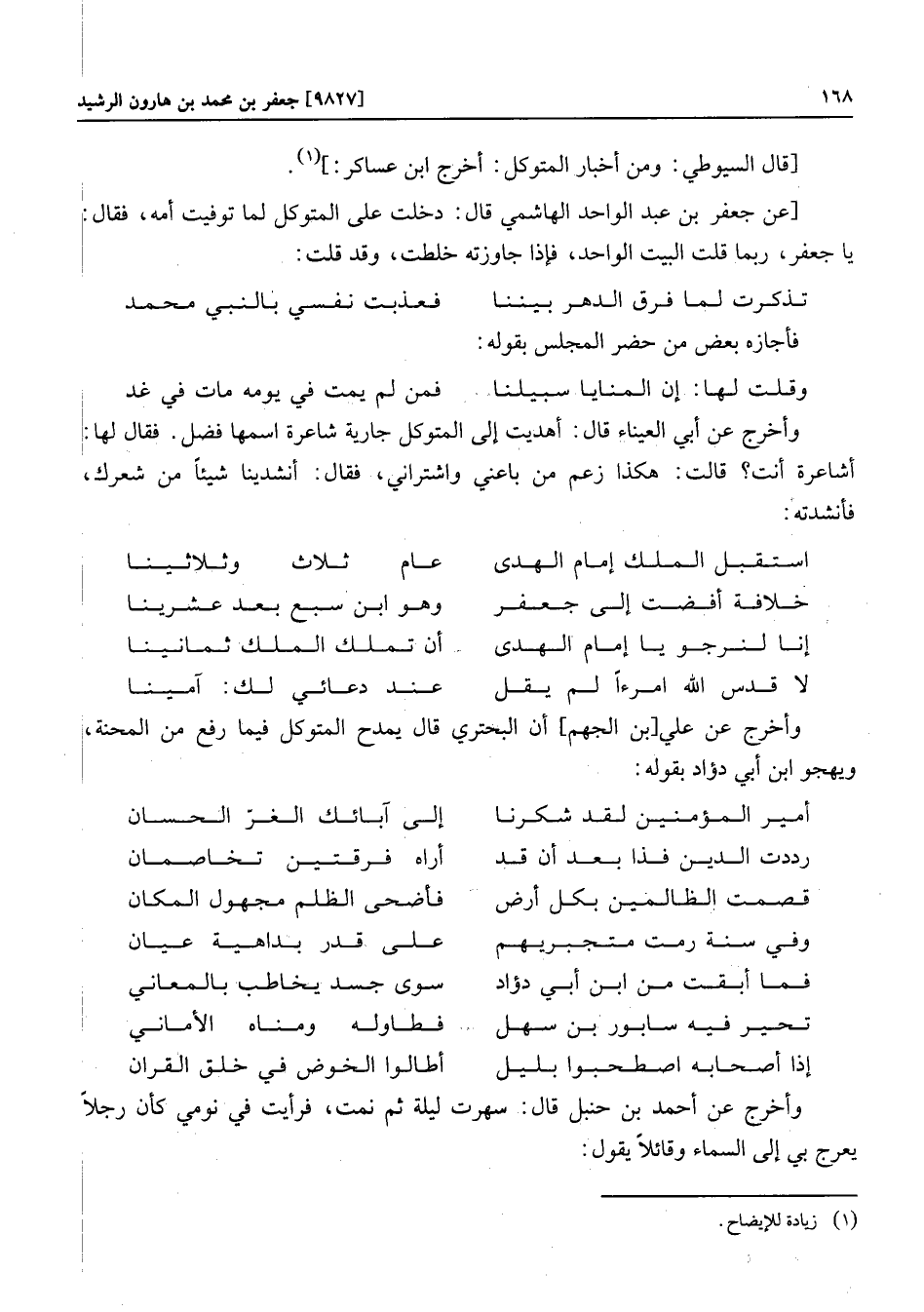 وأخرج عن علي [بن الجهم] أن البحتري قال يمدح المتوكل فيما رفع من المحنة، ويهجو ابن أبي دؤاد بقوله: