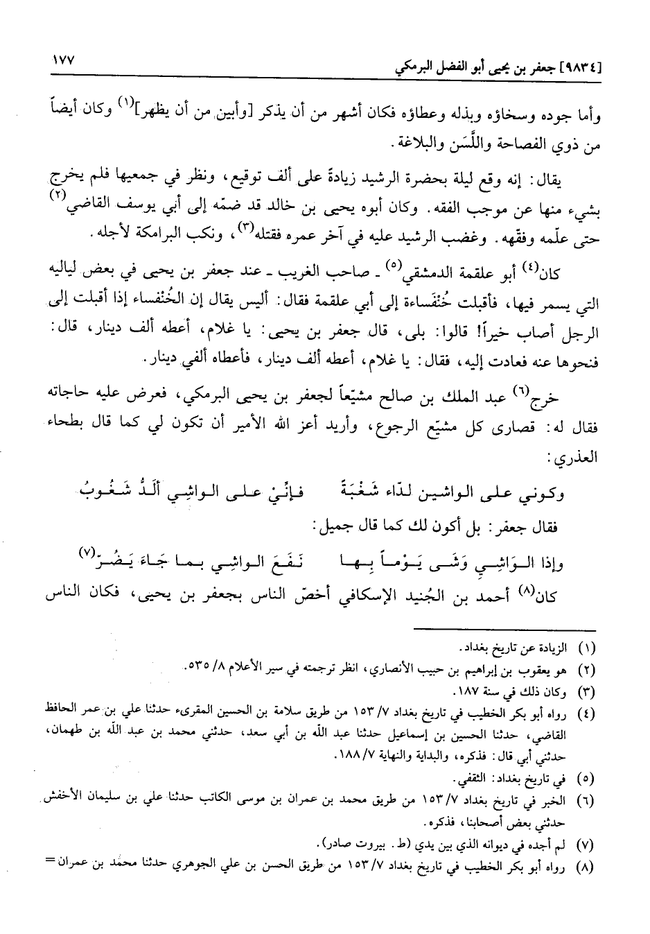 كان «8» أحمد بن الجنيد الإسكافي أخصّ الناس بجعفر بن يحيى، فكان الناس