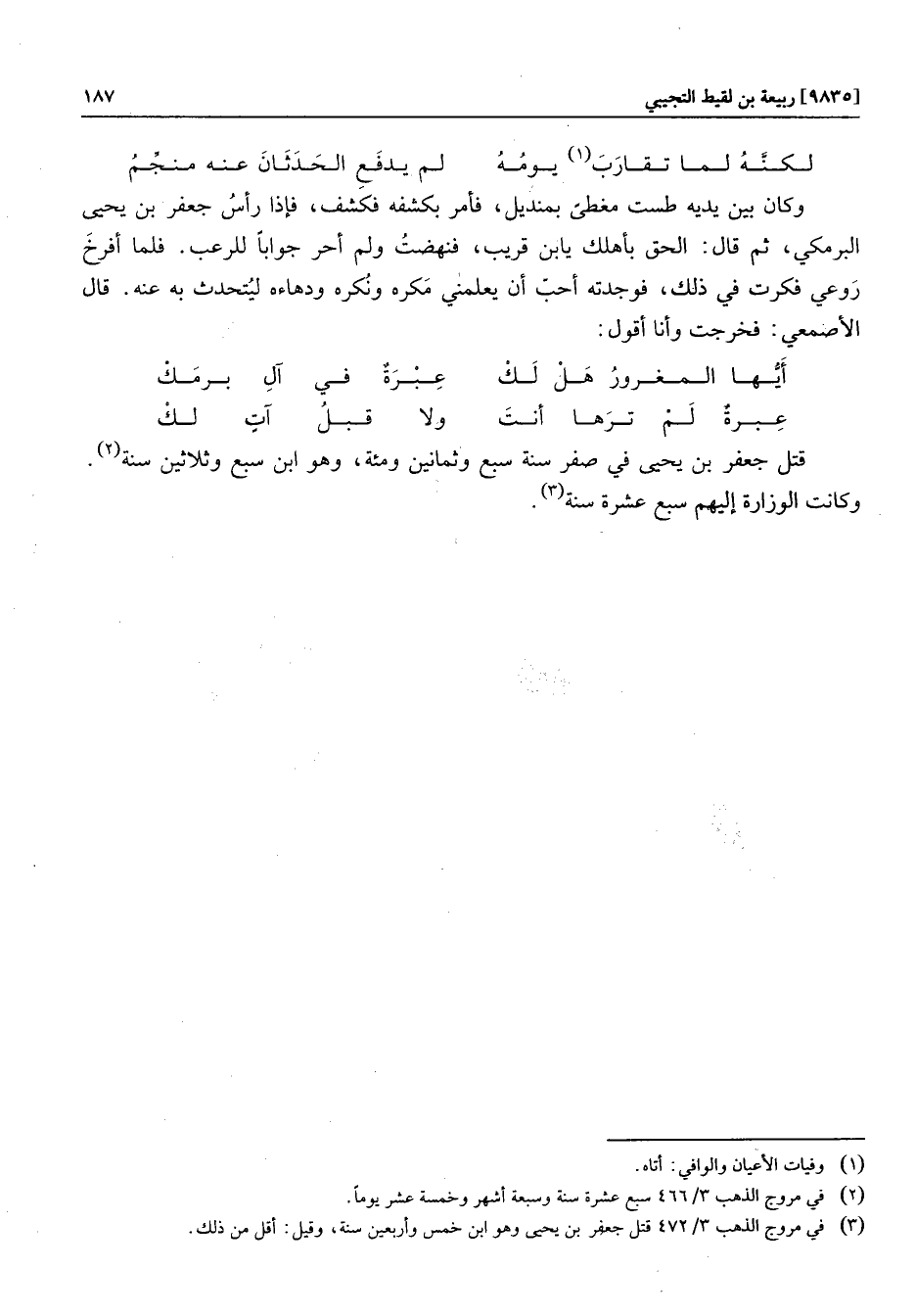 قتل جعفر بن يحيى في صفر سنة سبع وثمانين ومئة، وهو ابن سبع وثلاثين سنة «2» .