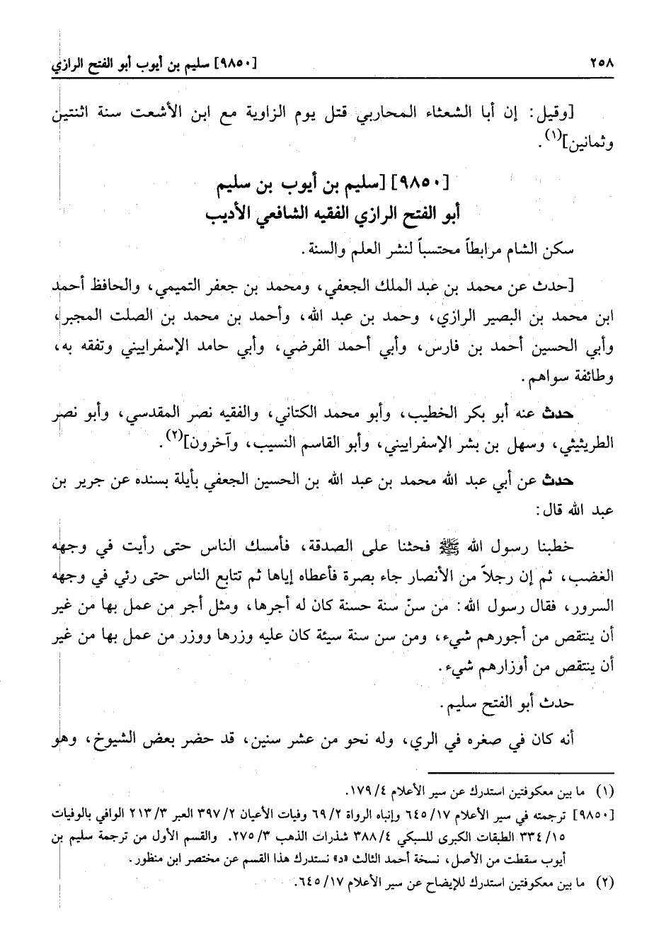 [9850] ترجمته في سير الأعلام 17/645 وإنباه الرواة 2/69 وفيات الأعيان 2/397 العبر 3/213 الوافي بالوفيات 15/334 الطبقات الكبرى للسبكي 4/388 شذرات الذهب 3/275. والقسم الأول من ترجمة سليم بن أيوب سقطت من الأصل، نسخة أحمد الثالث «د» نستدرك هذا القسم عن مختصر ابن منظور.