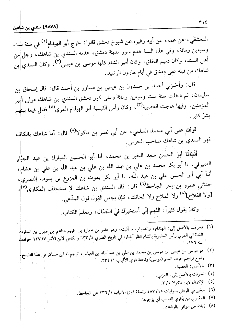 قرأت على أبي محمد السلمي، عن أبي نصر بن ماكولا «5» قال: أما شاهك بالكاف فهو السندي بن شاهك صاحب الحرس.