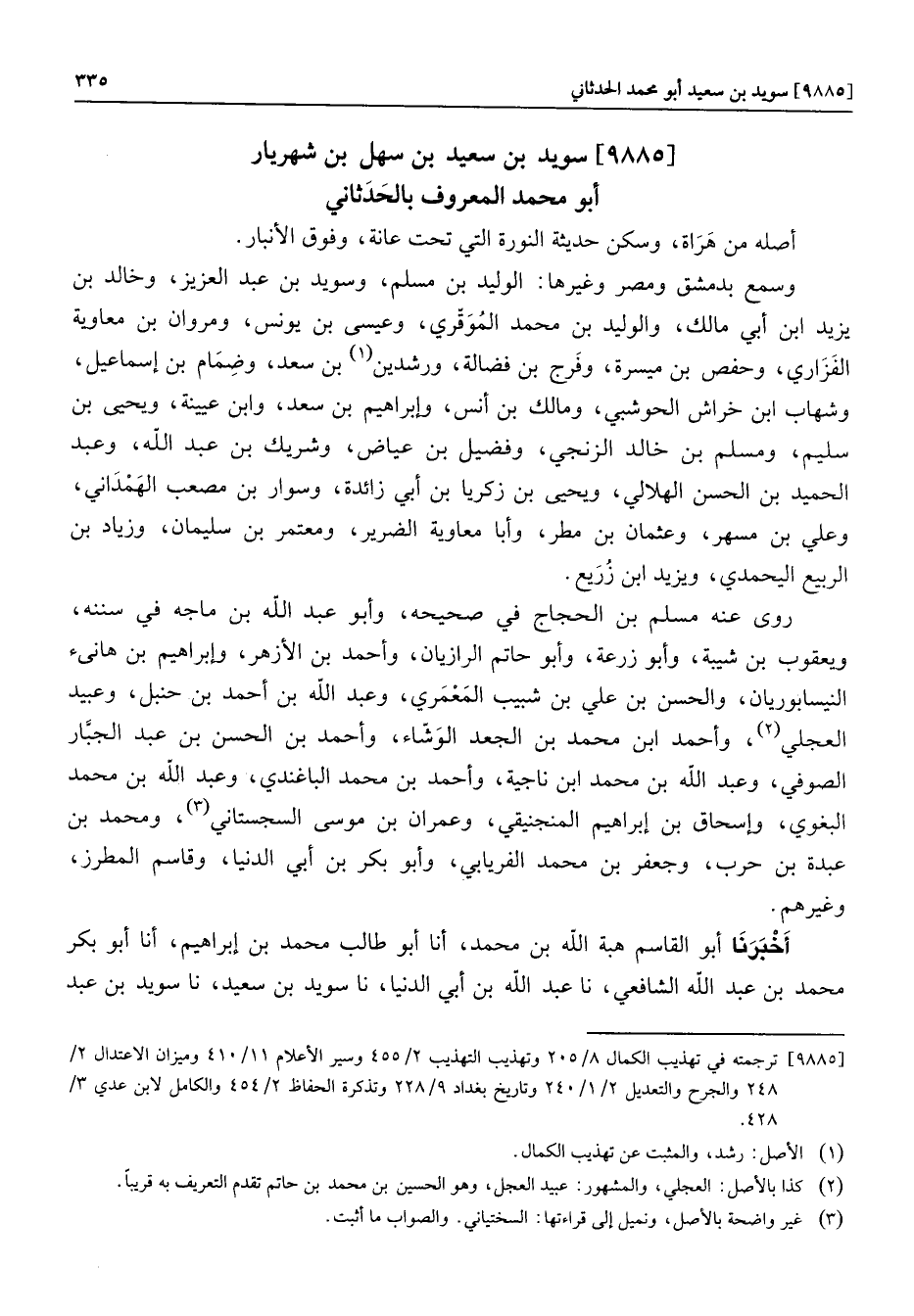 [9885] سويد بن سعيد بن سهل بن شهريار أبو محمد المعروف بالحدثاني