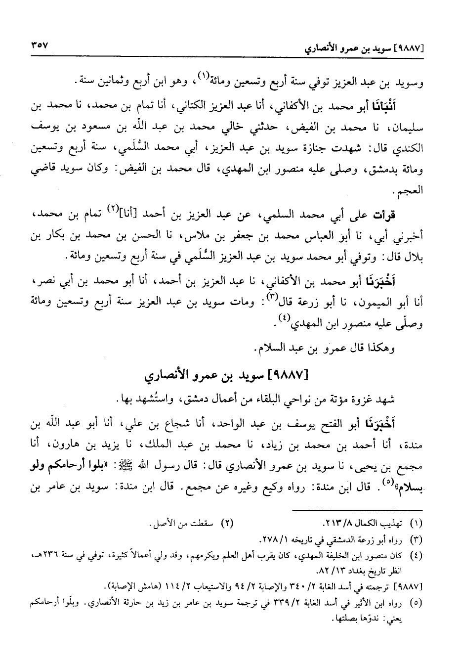 [9887] ترجمته في أسد الغابة 2/340 والإصابة 2/94 والاستيعاب 2/114 (هامش الإصابة) .