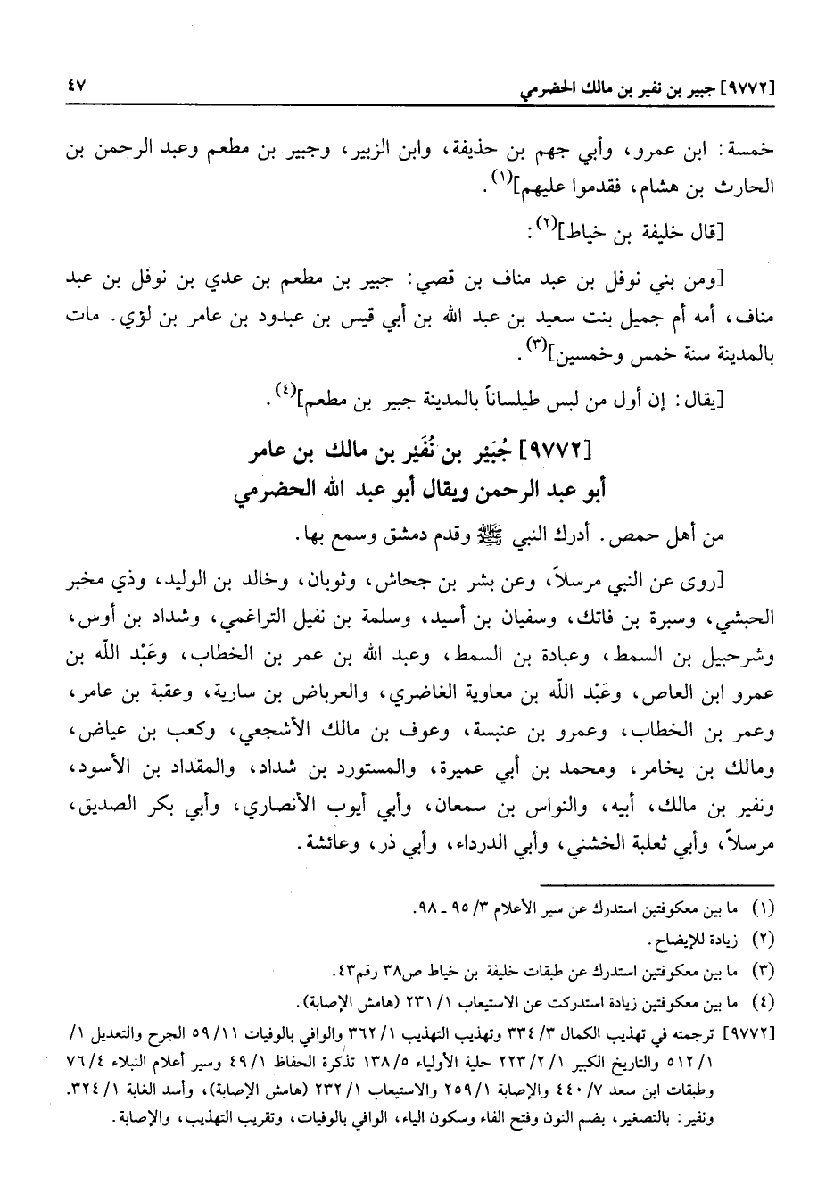 [9772] جبير بن نفير بن مالك بن عامر أبو عبد الرحمن ويقال أبو عبد الله الحضرمي