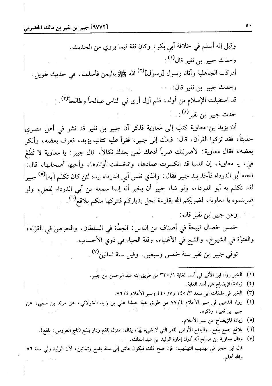 توفي جبير بن نفير سنة خمس وسبعين. وقيل سنة ثمانين «7» .