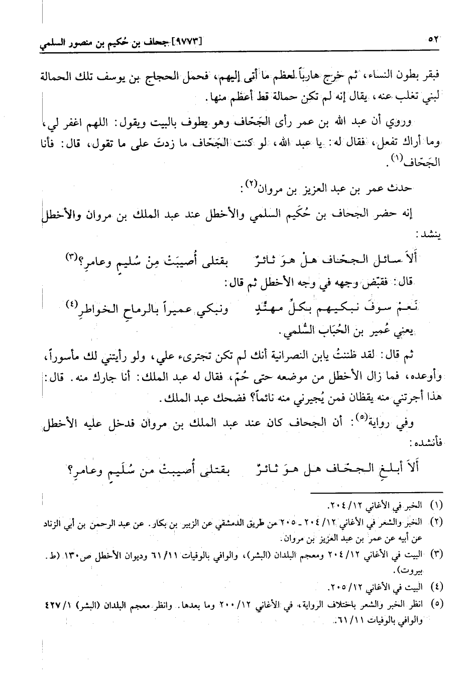 إنه حضر الجحاف بن حكيم السلمي والأخطل عند عبد الملك بن مروان والأخطل ينشد: