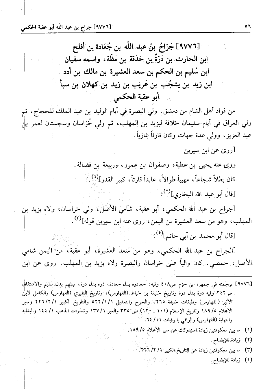 [9776] جرّاح بن عبد الله بن جعادة بن أفلح ابن الحارث بن درّة بن حدقة بن مظّة، واسمه سفيان ابن سليم بن الحكم بن سعد العشيرة بن مالك بن أدد ابن زيد بن يشجب بن عريب بن زيد بن كهلان بن سبأ أبو عقبة الحكمي