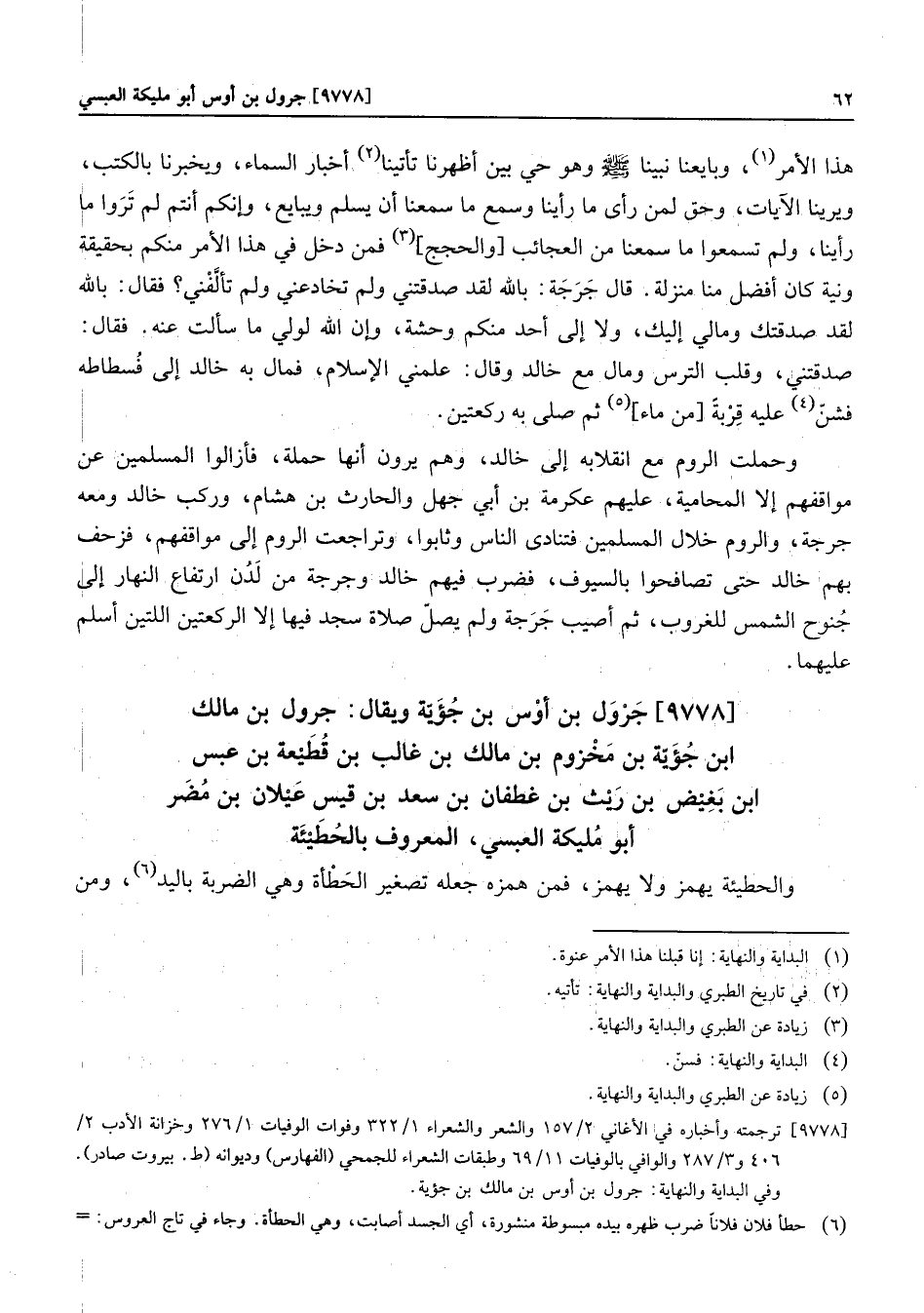 وفي البداية والنهاية: جرول بن أوس بن مالك بن جؤية.