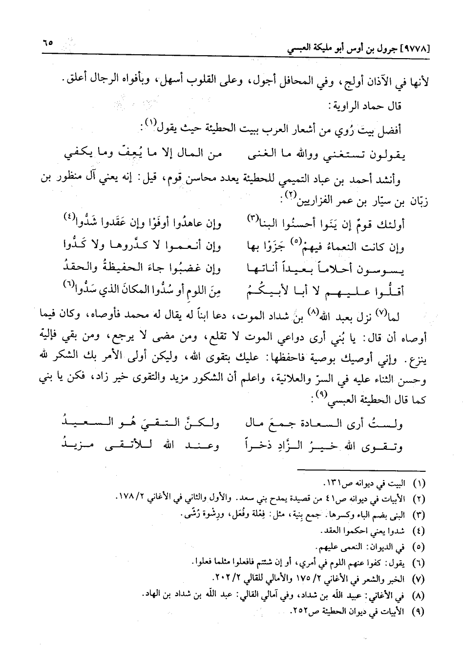 قال حماد الرواية: أفضل بيت روي من أشعار العرب ببيت الحطيئة حيث يقول «1» :