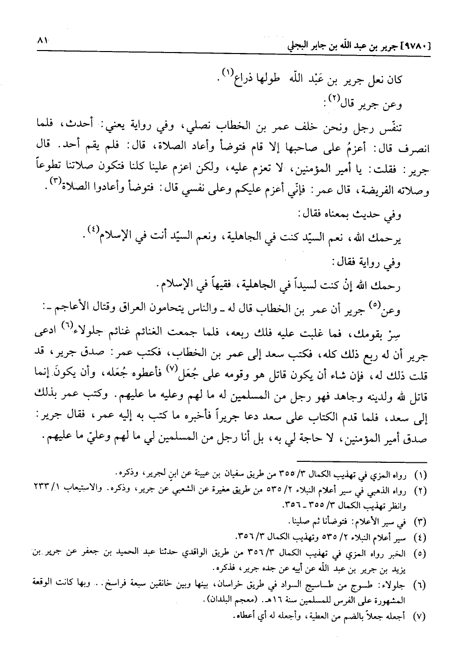 وعن «5» جرير أن عمر بن الخطاب قال له- والناس يتحامون العراق وقتال الأعاجم-: