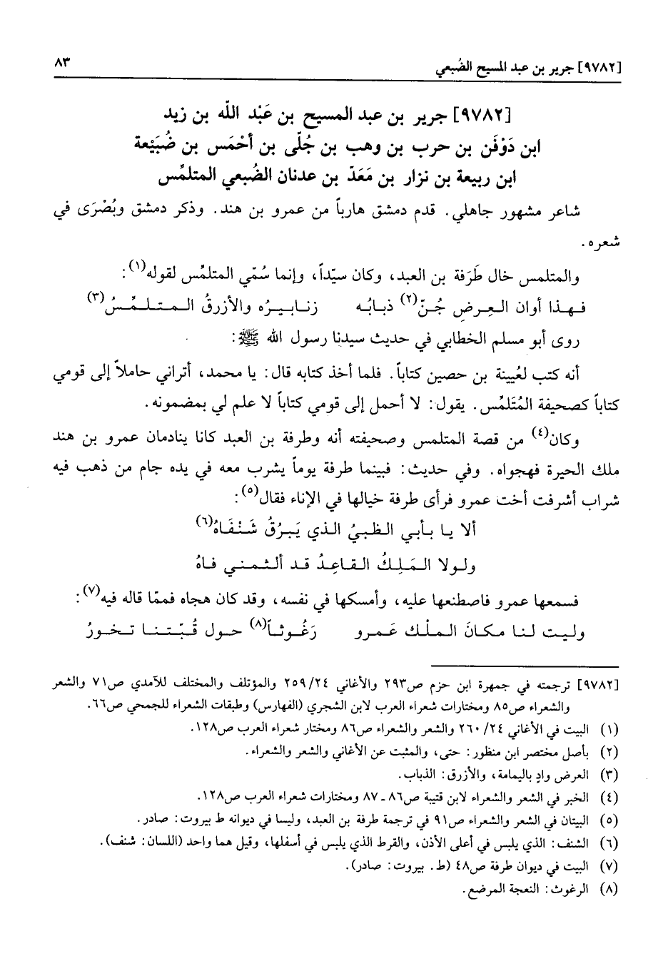 [9782] جرير بن عبد المسيح بن عبد الله بن زيد ابن دوفن بن حرب بن وهب بن جلّى بن أحمس بن ضبيعة ابن ربيعة بن نزار بن معدّ بن عدنان الضبعي المتلمّس