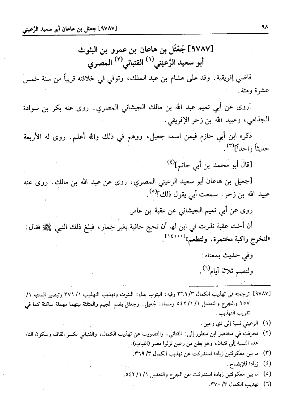 [9787] جعثل بن هاعان بن عمرو بن البثوث أبو سعيد الرّعيني «1» القتباني «2» المصري