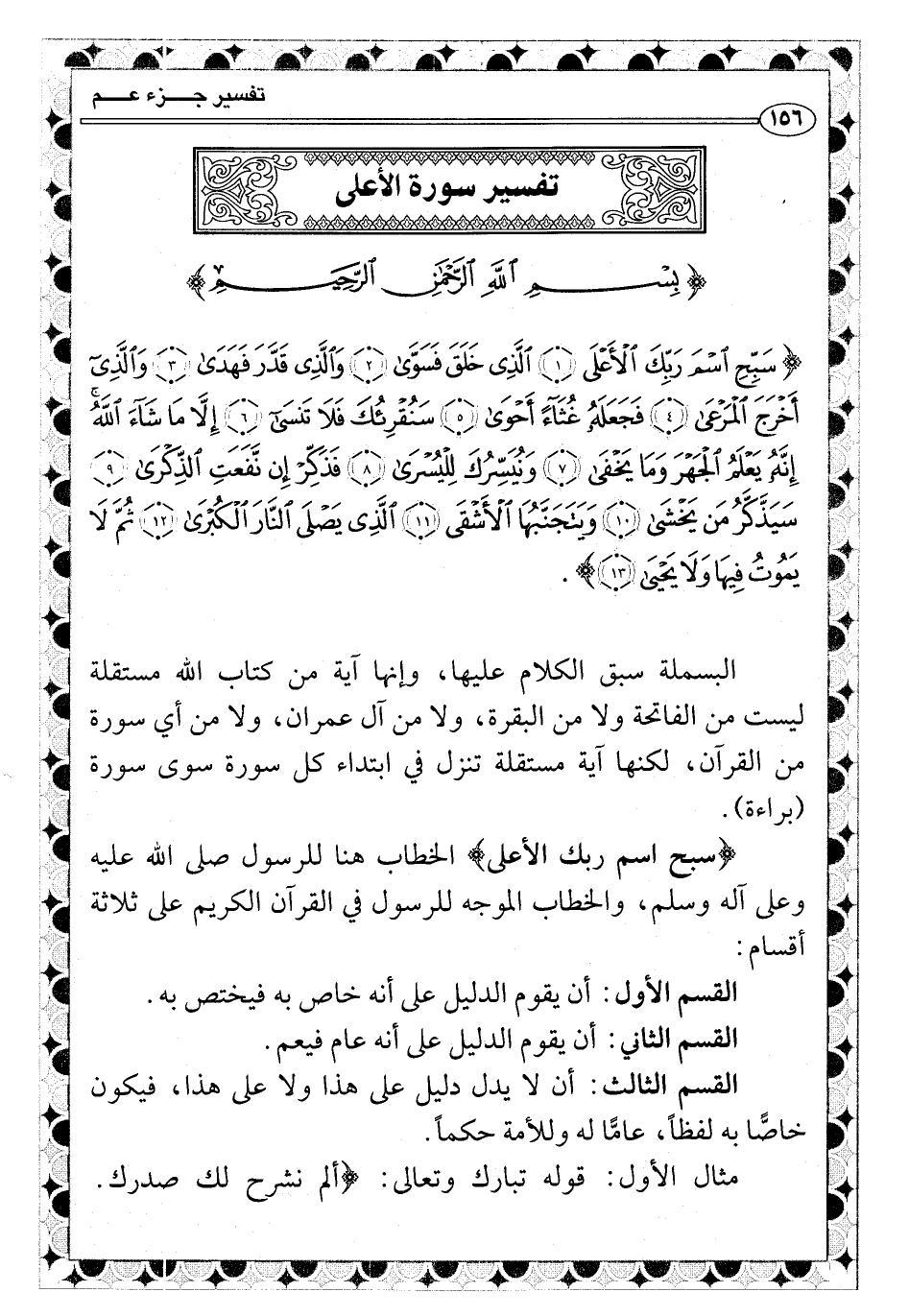 {سبح اسم ربك الأعلى} الخطاب هنا للرسول صلى الله عليه وعلى آله وسلم، والخطاب الموجه للرسول في القرآن الكريم على ثلاثة أقسام: