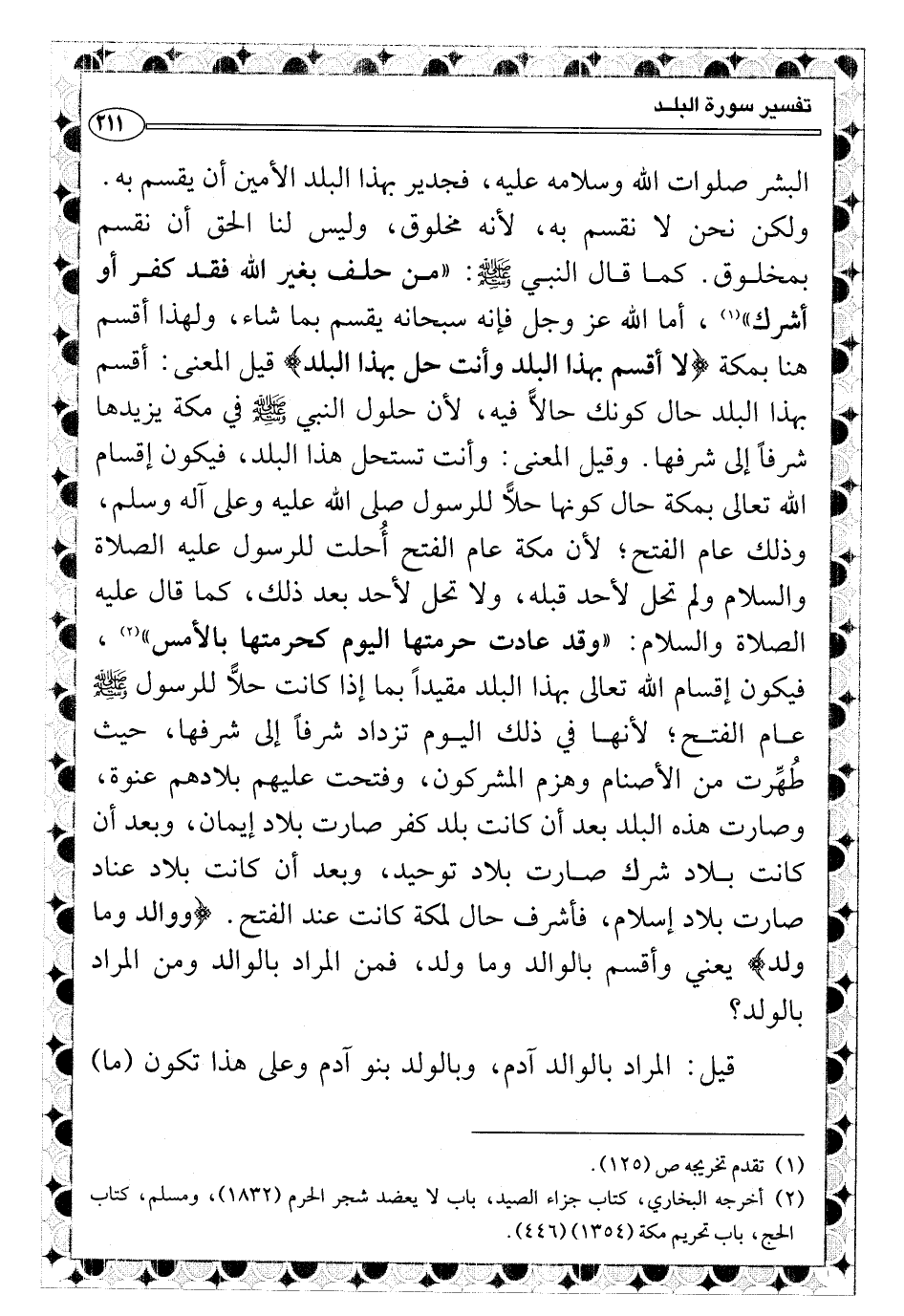 (¬٢) أخرجه البخاري كتاب جزاء الصيد باب لا يعضد شجر الحرم (١٨٣٢) ومسلم كتاب الحج باب تحريم مكة (١٣٥٤) (٤٤٦) .