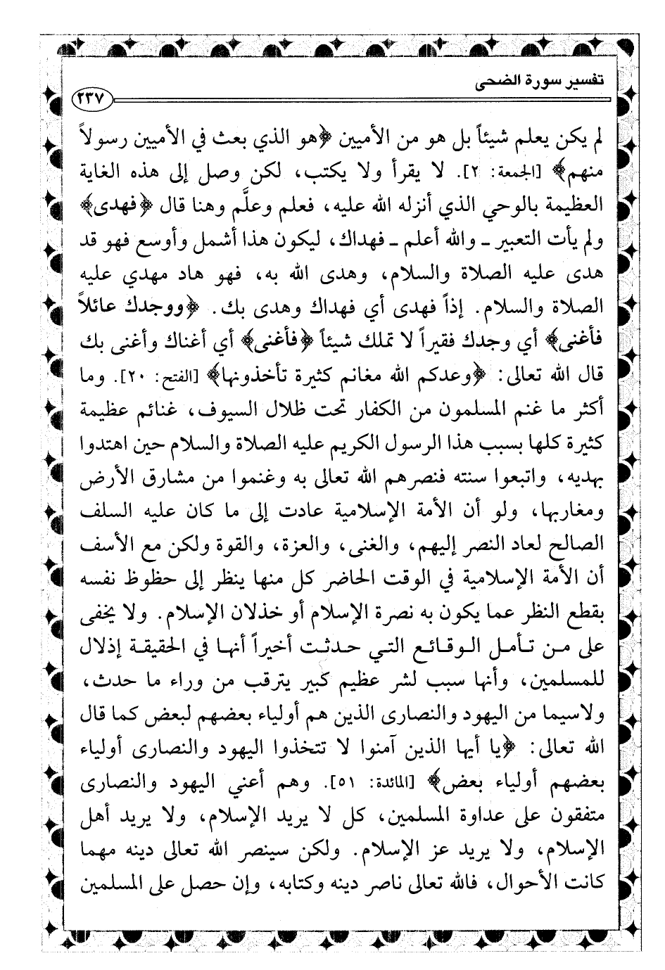 ولا يخفى على من تأمل الوقائع التي حدثت أخيراً أنها في الحقيقة إذلال للمسلمين، وأنها سبب لشر عظيم كبير يترقب من وراء ما حدث، ولاسيما من اليهود والنصارى الذين هم أولياء بعضهم لبعض كما قال الله تعالى: {يا أيها الذين آمنوا لا تتخذوا اليهود والنصارى أولياء بعضهم أولياء بعض} [المائدة: ٥١] . وهم أعني اليهود والنصارى متفقون على عداوة المسلمين، كل لا يريد الإسلام، ولا يريد أهل الإسلام، ولا يريد عز الإسلام. ولكن سينصر الله تعالى دينه مهما كانت الأحوال، فالله تعالى ناصر دينه وكتابه، وإن حصل على المسلمين