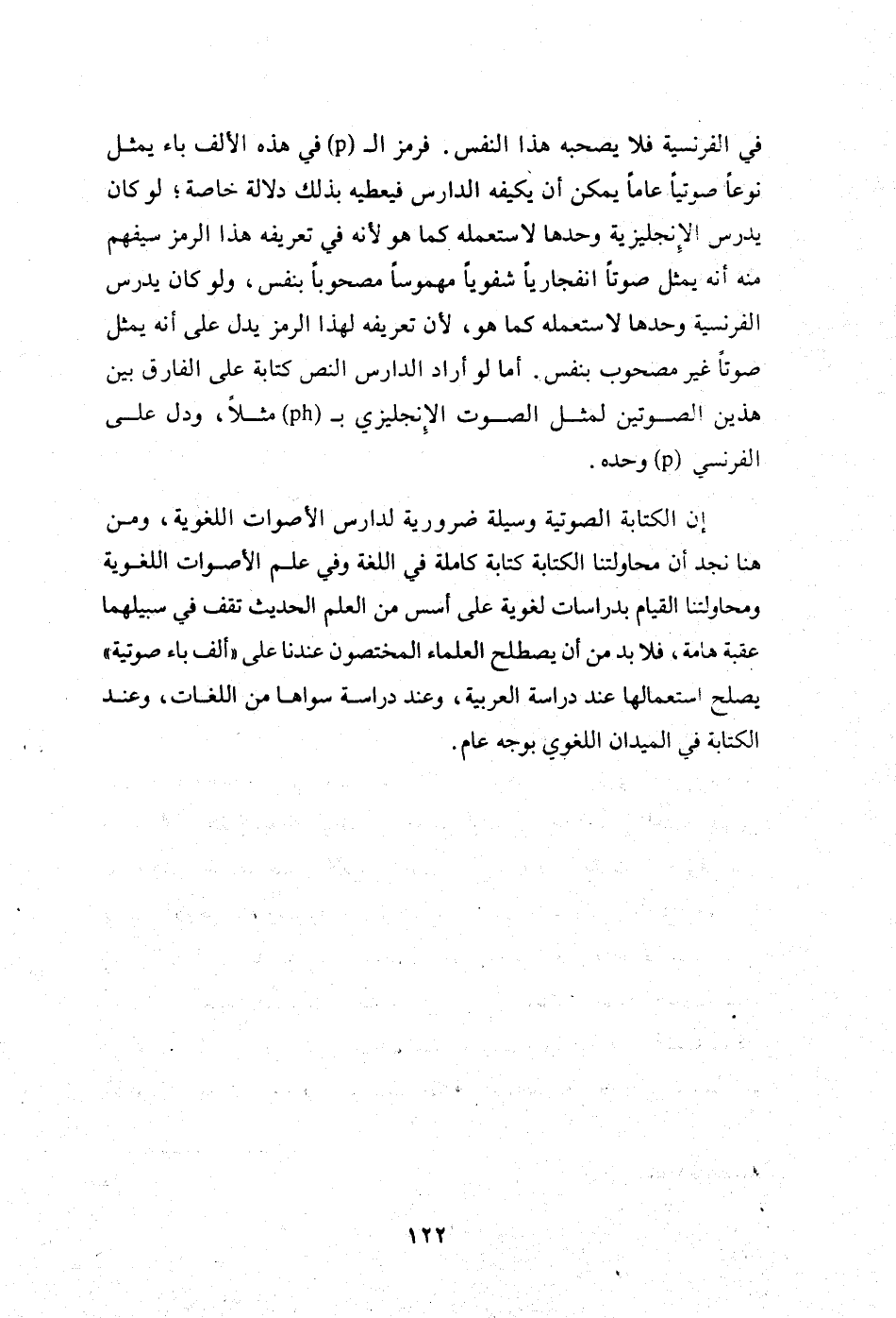 وقال:3 "إن موضع الفصل بين صوت كلامي وبين الصوت الذي يليه في السلسلة "الكلامية" يمكن أن يعتبر أي نقطة في "المعبر" يصلح اختيارها على أسس لغوية. وهذه النقطة في معظم الأحوال لا تقابل أي تغير حاد في نموذج "الأثر الصوتي أو الأوسيلوجام"4.