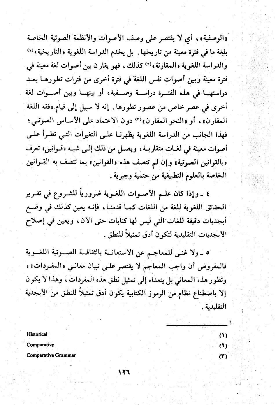 ويلاحظ أن مقدار "وضوح" الأصوات في السمع يعتمد على "طبيعتها" وينبغي أن يميز من "بروز"2 "ظهور" الأصوات في سلسلة كلامية: "إن "البروز" يعتمد على ارتباط "طبيعية"3 الصوت و"طوله"4 و"ارتكازه"5. وعلى "درجته"6 "= "تنغيمه"7" في حالة الأصوات المجهورة.