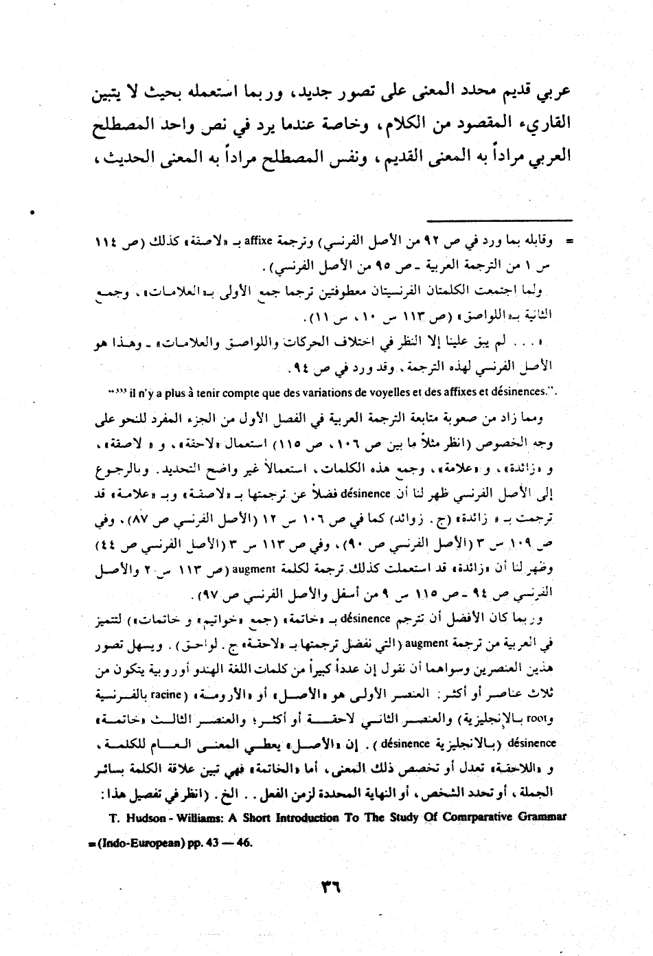 1 من ذلك ما صنعه مترجما كتاب "اللغة" لفندريس من ترجمة Les morphemes أحيانا بـ"الأصوات"، و"الأصوات" هي الترجمة المعهودة والتي اتبعاها في نقل les sons.
