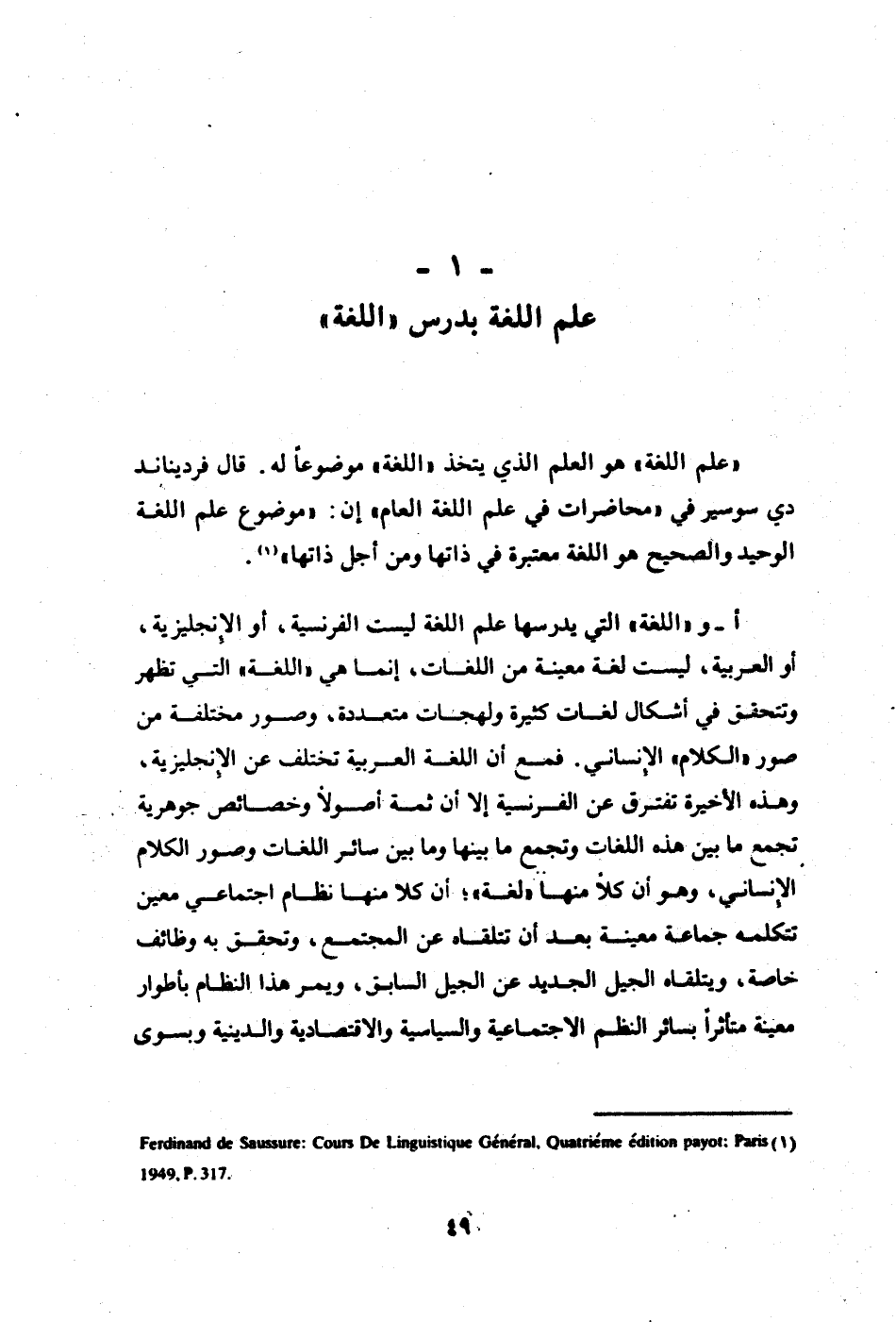 إن طبيعة موضوع علم اللغة، تلك الظاهرة الإنسانية التي هي اللغة، التي هي متطورة بطبعها، تفرض على الباحث أن يتساءل أول ما يتساءل: