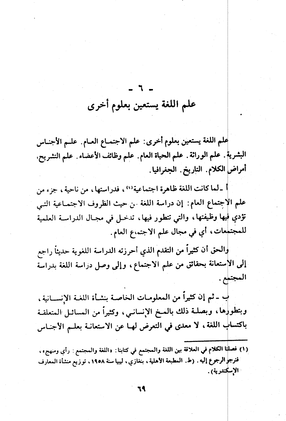 5- ولقد بينت في كتابي "اللغة والمجتمع: رأي ومنهج"10 أن النظرية "الكلاسيكية" في اللغة تقوم على أساس "منطقي" أو "رياضي" أو "نفسي"
