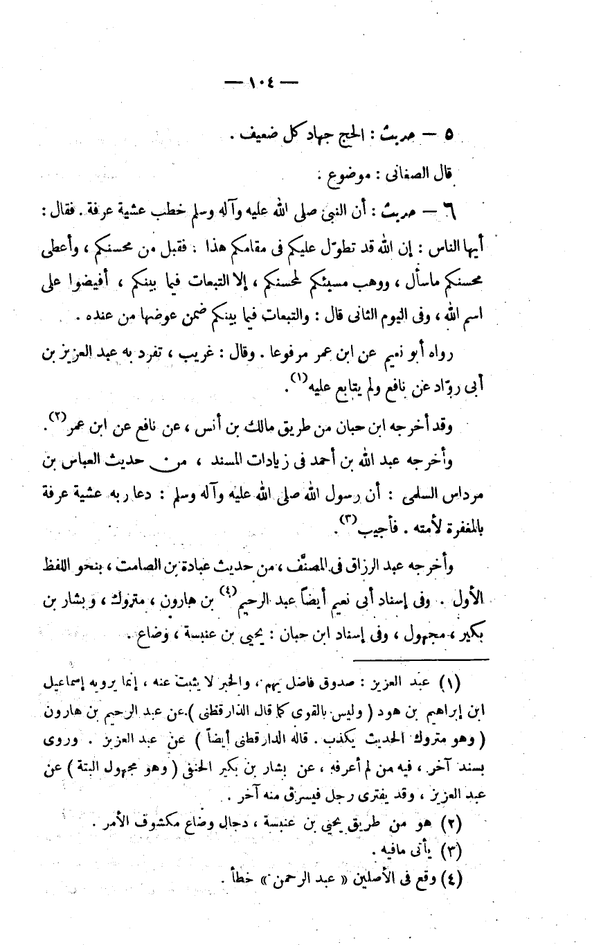 5 - حديث: "الْحَجُّ جِهَادُ كُلِّ ضَعِيفٍ.