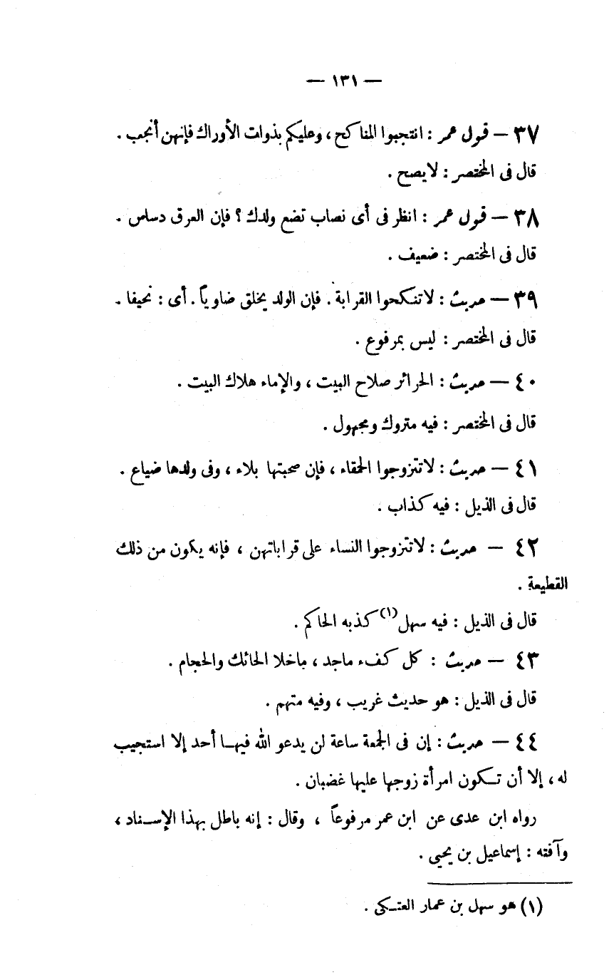 37 _ قول عمر: انْتَجِبُوا الْمَنَاكِحَ وَعَلَيْكُمْ بِذَوَاتِ الأَوْرَاكِ فَإِنَّهُنَّ أَنْجَبُ.