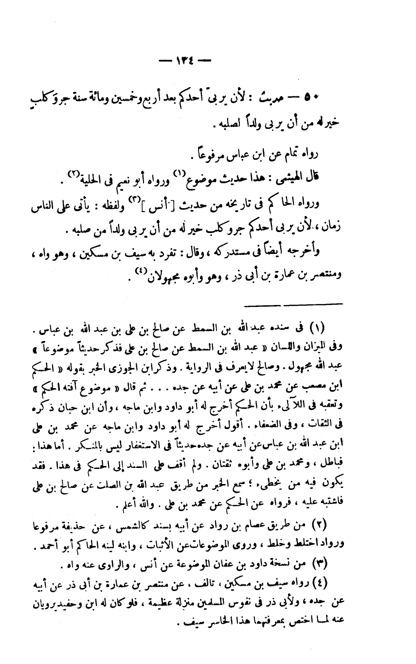 50 - حديث: " لأَنْ يُرَبِّيَ أَحَدُكُمْ بَعْدَ أَرْبَعٍ وَخَمْسِينَ وَمِائَةِ سَنَةٍ جِرْوَ كَلْبٍ خَيْرٌ لَهُ مِنْ أَنْ يُرَبِّيَ وَلَدًا لِصُلْبِهِ".