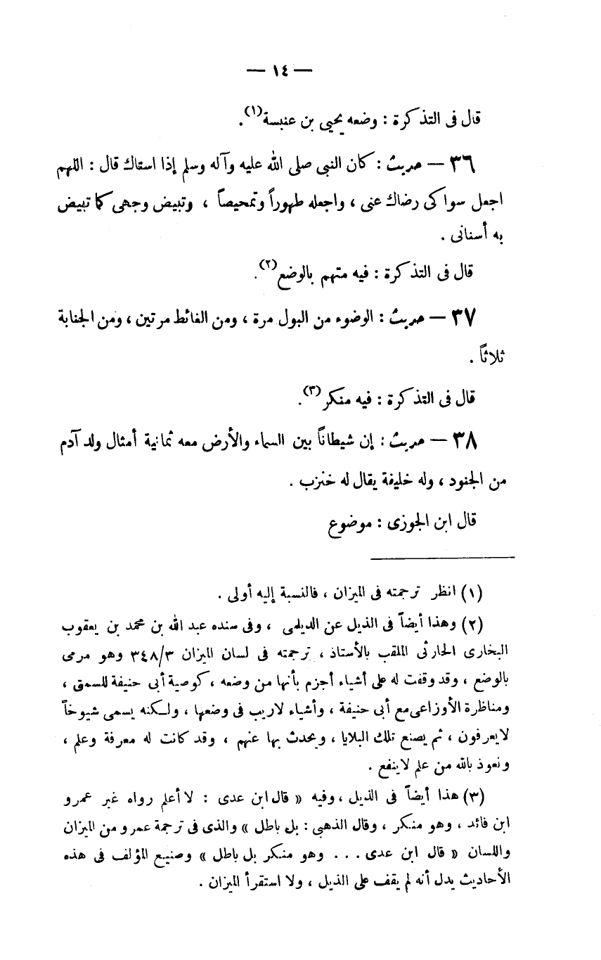 (3) هذا أيضاً في الذيل، وفيه (قال ابن عدي: لا أعلم رواه غير عمرو ابن فائد، وهو منكر، وقال الذهبي: بل باطل) والذي في ترجمة عمرو من الميزان واللسان (قال ابن عدي...... وهو منكر بل باطل) وصنيع المؤلف في هذه الأحاديث يدل أنه لم يقف على الذيل، ولا استقرأ الميزان.