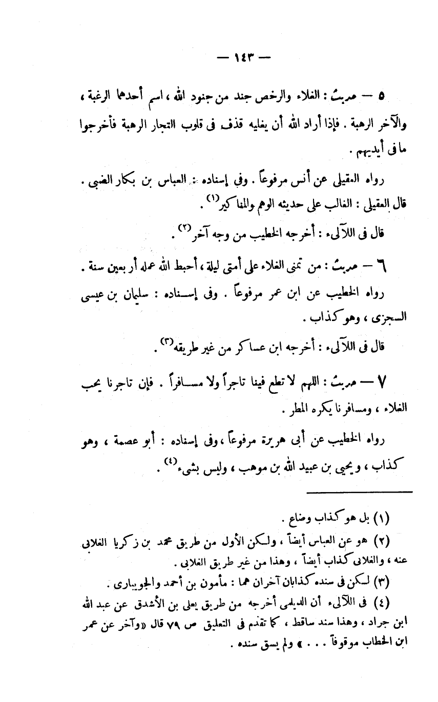 7 - حديث: "اللَّهُمَّ لا تُطِعُ فِينَا تَاجِرًا وَلا مُسَافِرًا فَإِنَّ تَاجِرَنَا يُحِبُّ الْغَلاءَ وَمُسَافِرَنَا يَكْرَهُ الْمَطَرَ".