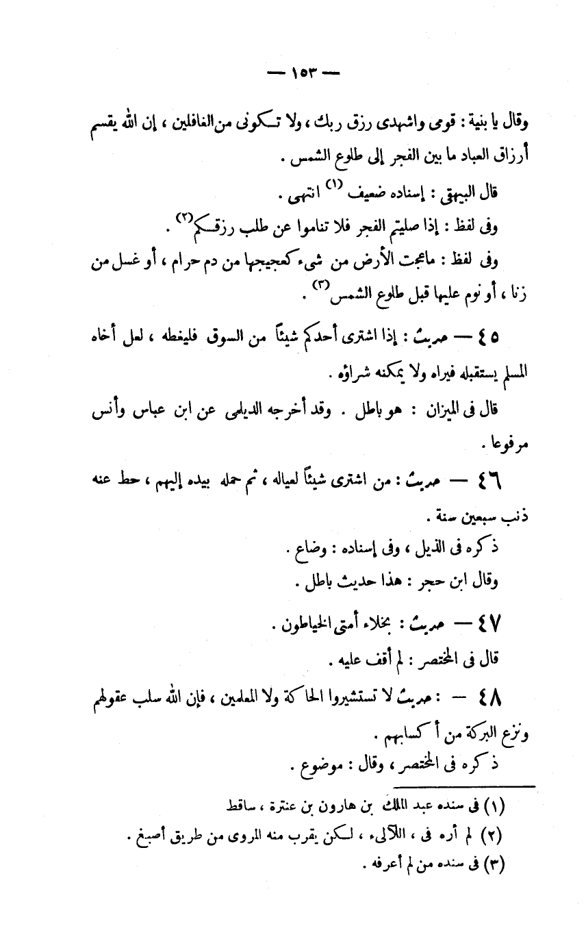 وَفِي لَفْظِ: إِذَا صَلَّيْتُمُ الْفَجْرَ فَلا تَنَامُوا عَنْ طَلَبِ رِزْقِكُمْ (2) .