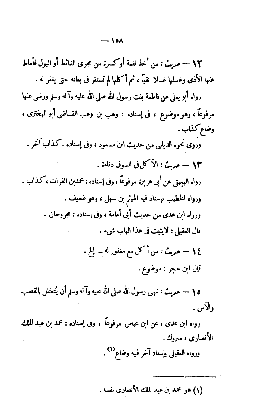 12 - حديث: "مَنْ أَخَذَ لُقْمَةً أَوْ كِسْرَةً مِنْ مَجْرَى الْغَائِطِ أَوِ الْبَوْلِ فَأَمَاطَ عَنْهَا الأَذَى وَغَسَلَهَا غَسْلا نَقِيًّا ثُمَّ أَكْلَهَا لَمْ تَسْتَقِرَّ فِي بَطْنِهِ حَتَّى يُغْفَرَ لَهُ".