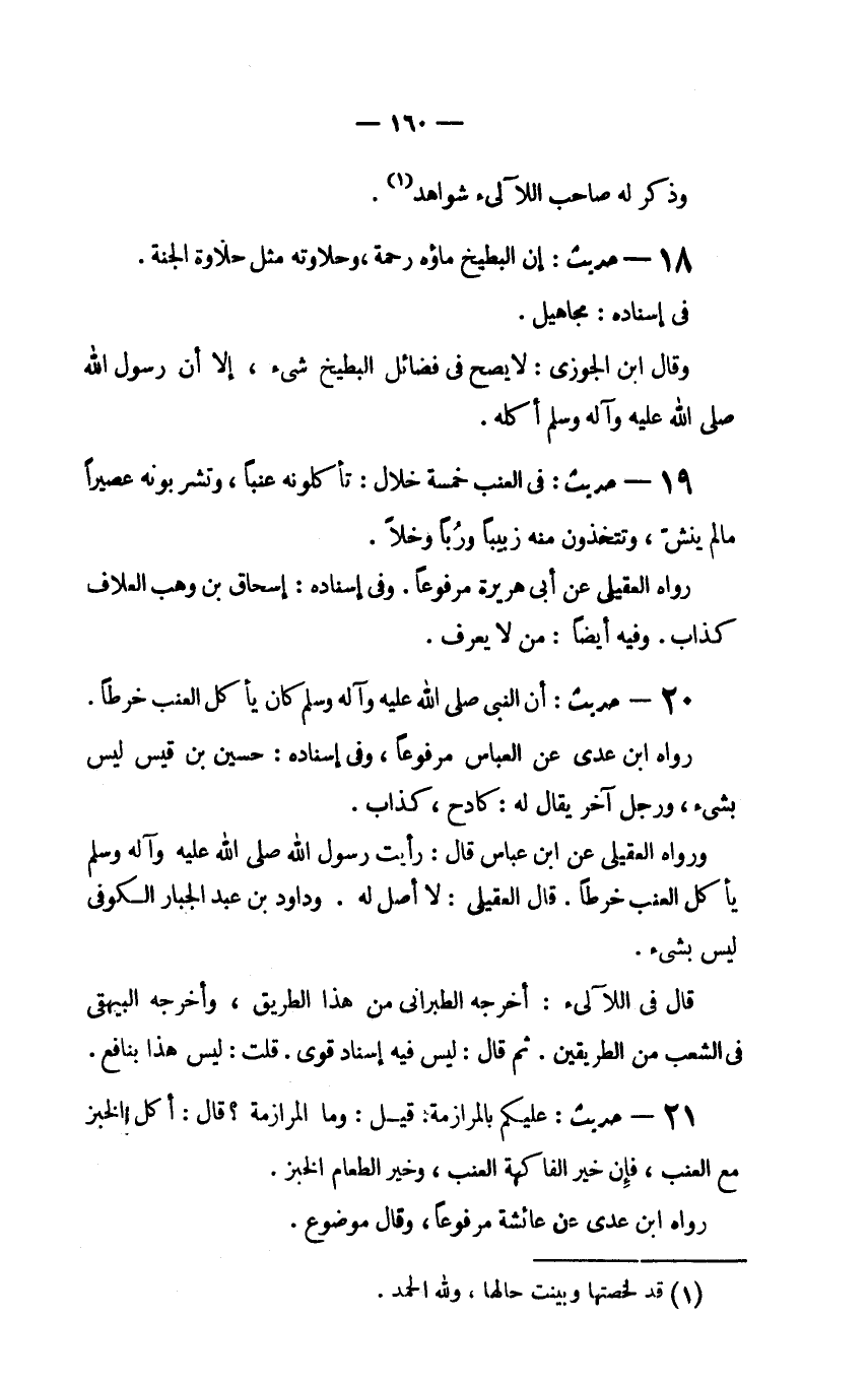 18 - حديث: "إِنَّ الْبِطِّيخَ مَاؤُهُ رَحْمَةٌ وَحَلاوَتُهُ مِثْلُ حَلاوَةِ الْجَنَّةِ.