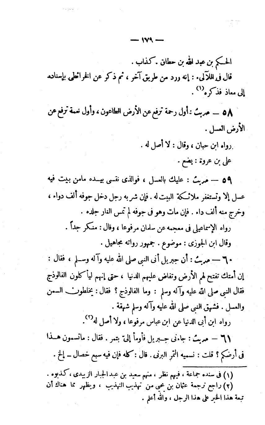 58 - حديث: "أَوَّلُ رَحْمَةٍ تُرْفَعُ عَنِ الأَرْضِ الطَّاعُونُ وَأَوَّلُ نِعْمَةٍ تُرْفَعُ عَنِ الأَرْضِ الْعَسَلُ".