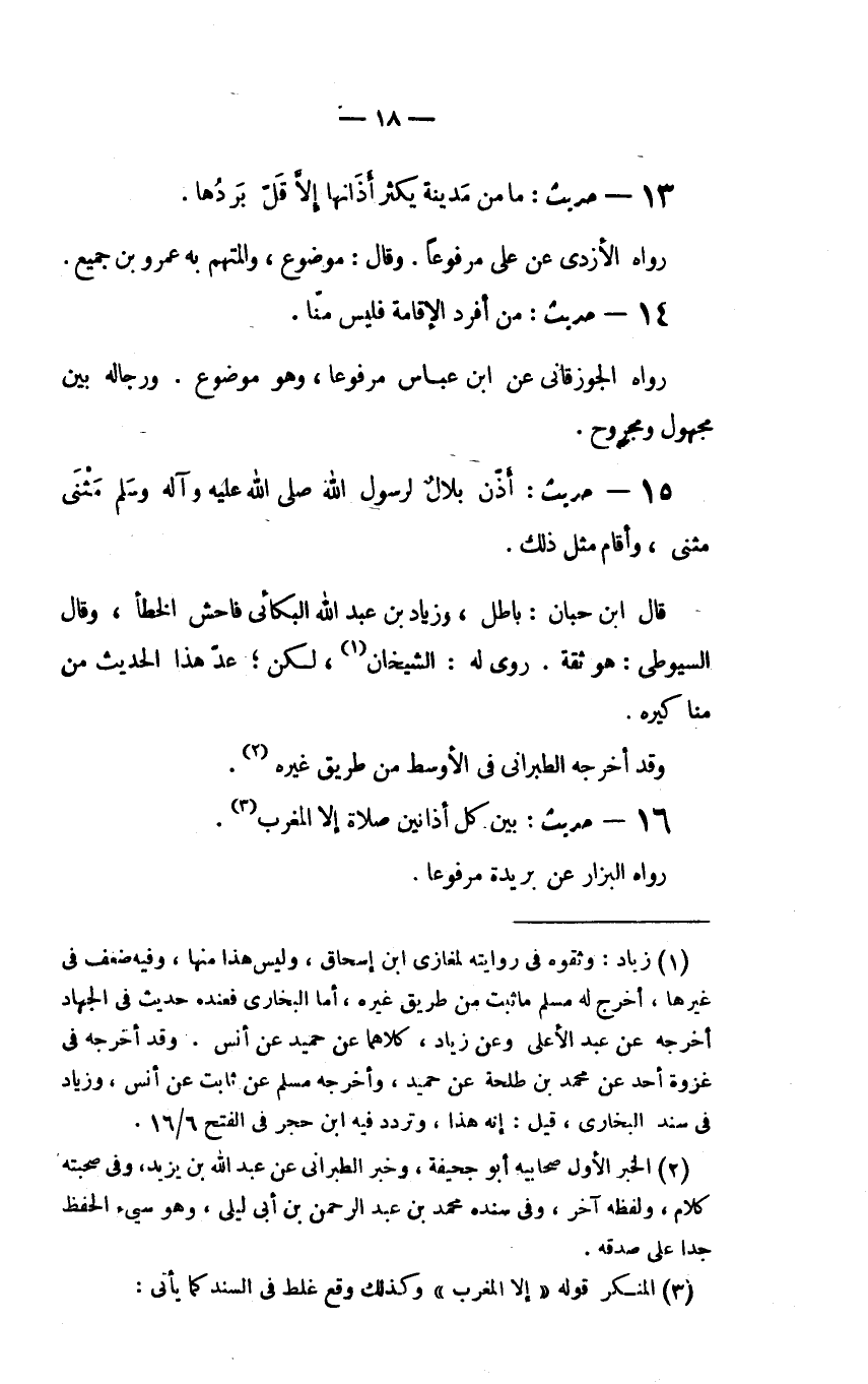 13- حديث: "مَا مِنْ مَدِينَةٍ يَكْثُرُ أَذَانُهَا إلا قل َّ بَرْدُهَا".