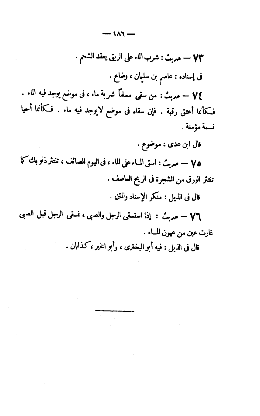 75 - حديث: "اسْقِ الْمَاءَ عَلَى الْمَاءِ فِي الْيَوْمِ الصَّائِفِ تَنْتَثِرُ ذُنُوبُكَ كَمَا تَنْتَثِرُ الْوَرَقُ مِنَ الشَّجَرَةِ فِي الرِّيحِ الْعَاصِفِ قَالَ فِي الذَّيْلِ منكر الإسناد والمتن
