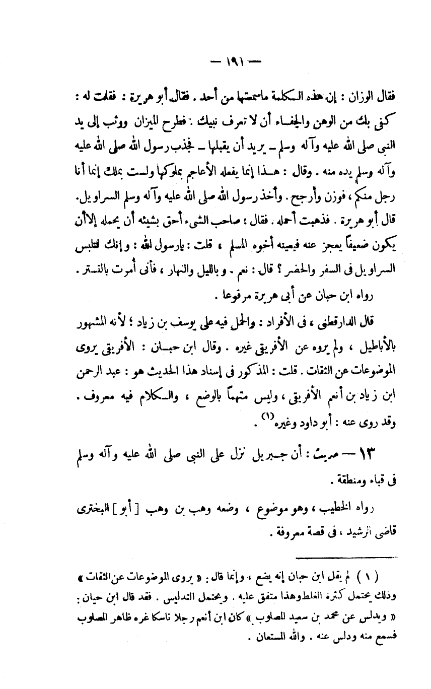13 حديث: "إِنَّ جِبْرِيلَ نَزَلَ عَلَى النَّبِيِّ صَلَّى اللَّهُ عَلَيْهِ وَآلِهِ وَسَلَّمَ فِي قُبَاءٍ وَمِنْطَقَةٍ".