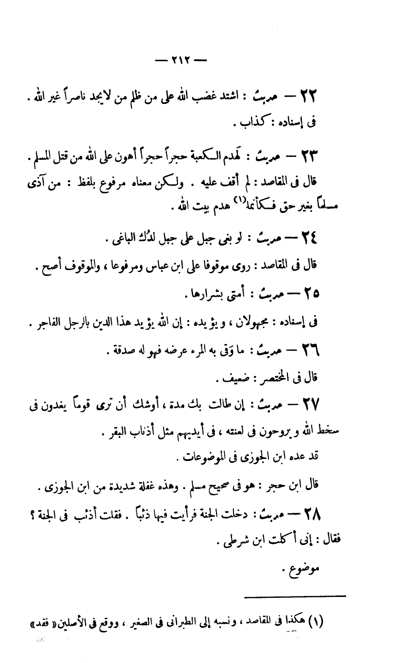 (1) هكذا فِي الْمَقَاصِدِ، وَنَسَبَهُ إِلَى الطَّبَرَانِيُّ في الصغير، ووقع في الأصلين (فقد) .