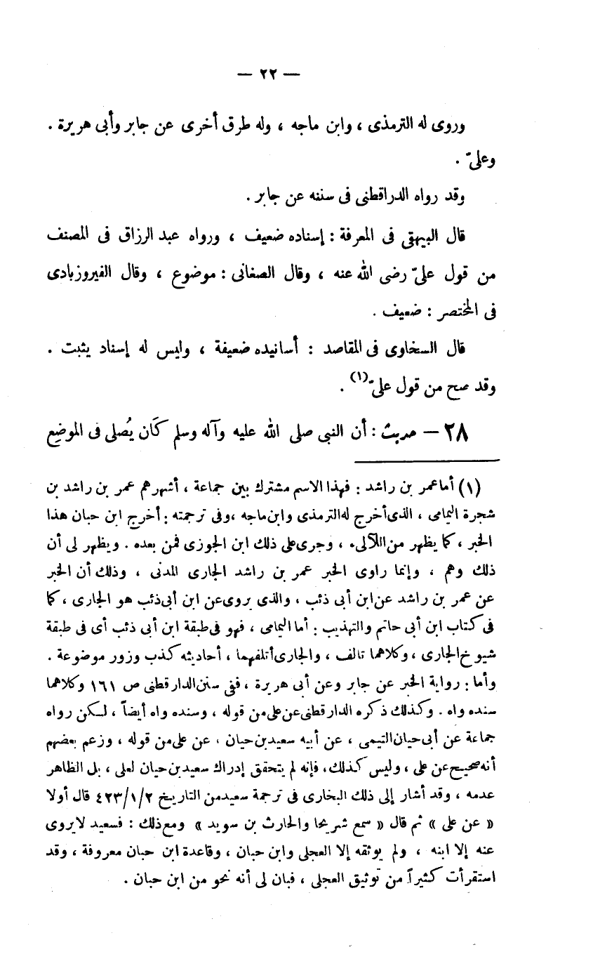 28 - حديث: "أَنَّ النَّبِيَّ صَلَّى اللَّهُ عَلَيْهِ وَآلِهِ وَسَلَّمَ كَانَ يُصَلِّي فِي الموضع
