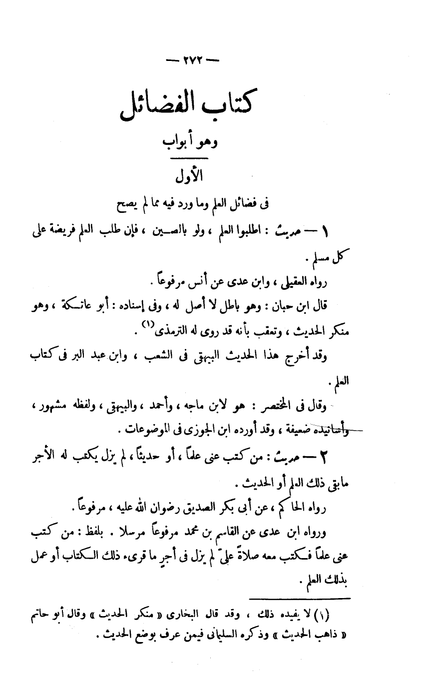 الأول: في فضائل العلم وما ورد فيه مما لم يصح