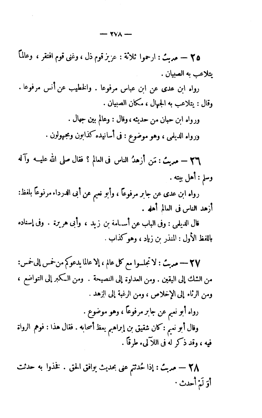 25 – حديث: "ارْحَمُوا ثَلاثَةً: عَزِيزَ قَوْمٍ ذَلَّ، وَغَنِيَّ قَوْمٍ افْتَقَرَ، وَعَالِمًا يَتَلاعَبُ بِهِ الصِّبْيَانِ".
