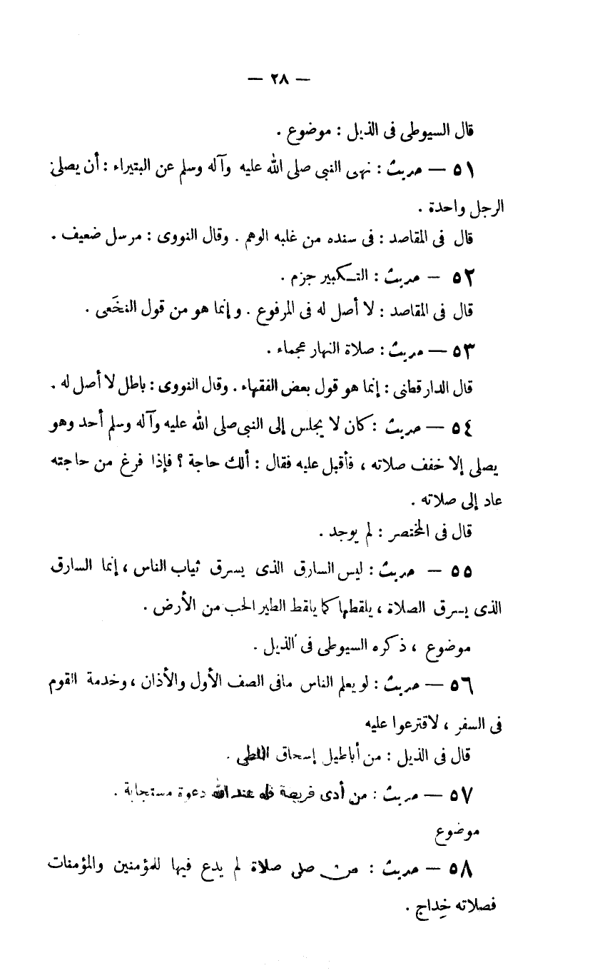 51 - حديث: "نَهَى النَّبِيُّ صَلَّى اللَّهُ عَلَيْهِ وَآلِهِ وَسَلَّمَ عَنِ الْبُتَيْرَاءِ: أَنْ يُصَلِّيَ الرَّجُلُ وَاحِدَةً.