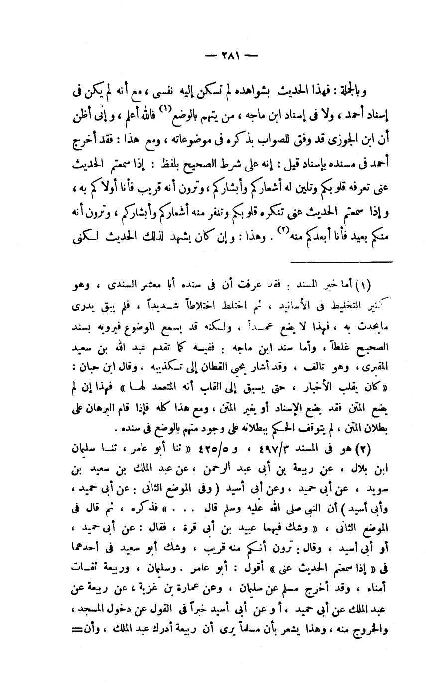 (2) وهو في المسند 3/497، و 5/425 (ثنا أبو عامر، ثنا سليمان ابن بلال، عن ربيعة بن أبي عبد الرحمن، عن عبد الملك بن سعيد بن سويد، عن أبي حميد، وعن أبي أسيد (وفي الموضع الثاني: عن أبي حميد، وأبي أسيد) أن النبي صلى الله عليه وسلم قال..........) فذكره، ثم قال في الموضع الثاني، (وشك فيهما عبيد بن أبي قرة، فقال: عن أبي حميد، أو أبي أسيد، وقال: ترون أنكم منه قريب، وشك أبو سعيد في أحدهما في (إذا سمعتم الحديث عني) أقول: أبو عامر. وسليمان، وربيعة ثقات أمناء، وقد أخرج مسلم عن سليمان، وعن عمارة بن غزية، عن ربيعة عن عبد الملك عن أبي حميد، أو عن أبي أسيد خبراً في القول عند دخول المسجد، والخروج منه، وهذا يشعر بأن مسلماً يرى أن ربيعة أدرك عبد الملك، وأن=
