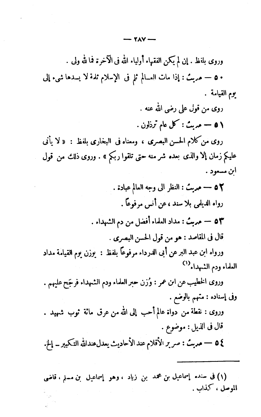53 - حديث: "مِدَادُ الْعُلَمَاءِ أَفْضَلُ مِنْ دَمِ الشهيد.