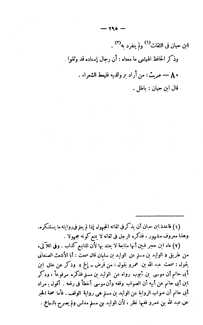 (1) قاعدة ابن حبان أن يذكر في ثقاته المجهول إذا لم يعلم في روايته ما يستنكره. وهذا معروف مشهور، فذكره الرجل في ثقاته لا يمنع كونه مجهولاً