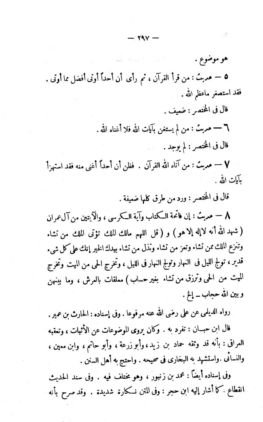 5 - حديث: "مَنْ قَرَأَ الْقُرْآنَ، ثُمَّ رَأَى أَنَّ أَحَدًا أُوتِيَ أَفْضَلَ مِمَّا أُوتِيَ. فَقَدِ اسْتَصْغَرَ مَا عَظَّمَ اللَّهُ.