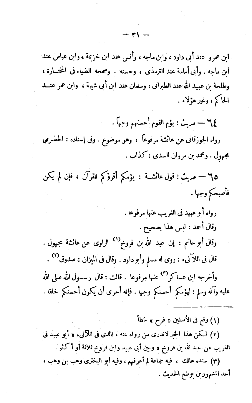 (2) لكن هذا الخبر لا ندري من رواه عنه، فالذي في اللآلىء (أبو عبيد في الغريب عن عبد الله بن فروخ) وبين أبي عبيد وابن فروخ ثلاثة أو أكثر.